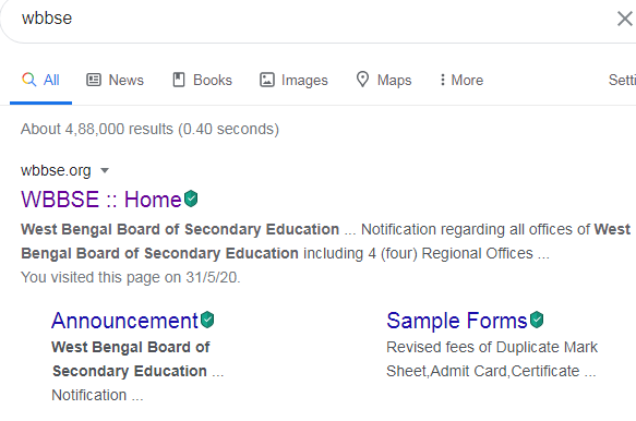 Step no (1) আপনি যেকোনো ব্রাউজারে যান তারপর গুগল সার্চ বাড়ে টাইপ করুন WBBSE তারপর সার্চ ক্লিক করুন